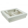 VIP Set, Includes: (1) White Kray Boxes with PET Window Lid - 60oz 7.1 x 7.1 x 2in - 200 pcs (210KRAYWH195), (1) Box With PE Window Perfect for Pastry, Eclair, Hot Dog, and More - 5.9 x 1.96 x 2.36in - 250 pcs (210CCLAIR), (1) White Kray Boxes with PET Window Lid - 12oz 3.9 x 3.9 x 1.6in - 250 pcs (210KRAYWH115)