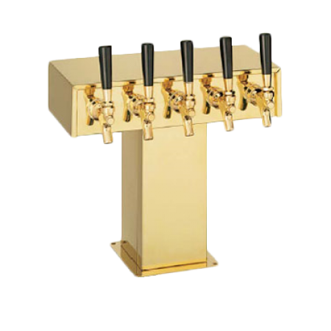 Tee Draft Beer Tower, countertop, 14-5/8"W x 12-15/16"H, glycol-cooled, accommodates (5) faucets , all Perlick towers include 630SS faucets (630SSTF faucets where applicable on TF Brass and Gold Towers), 2-3/4" OC, 9-1/2" faucet clearance, 4-5/8" sq. base, insulated dispensing heads, includes copper coolant lines & cold block, finish (Note: Must be combined with a full Century system quote, cannot be ordered standalone. )