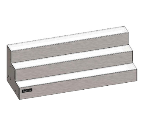 Lighted Merchandise Display, 3-tier, 24"W, white LED, right end location of power cord & on/off switch (custom - no returns for credit) 100-240v/50/60/1-ph, 1.2 amps, cord, 120v to 12VDC transformer 2-prong plug (dry locations only)