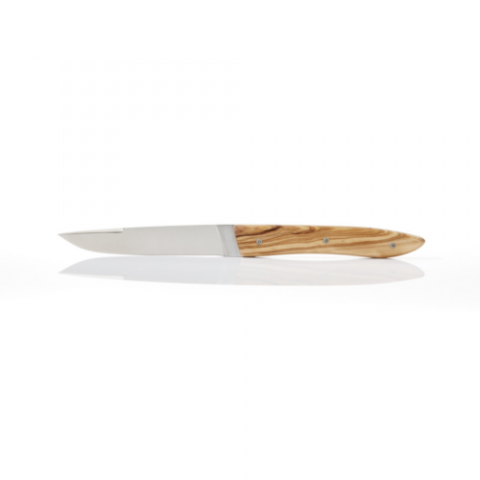 Perceval Ubac Table Knife, high end and resistant steel blade, non serrated, olive wood handle, customization possible, white, Made in France, (SHIPS FROM FRANCE)