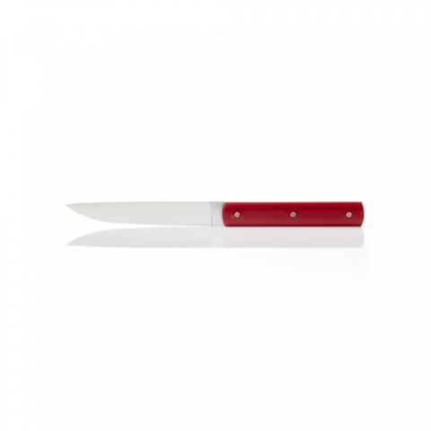 Perceval Table Knife 888, high end and resistant steel blade, non serrated, polyacetal handle, dishwasher safe, customization possible, red, Made in France, (SHIPS FROM FRANCE)