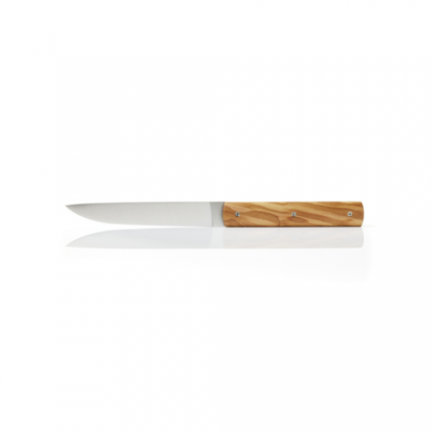 Perceval Table Knife 888, high end and resistant steel blade, non serrated, wood handle, customization possible, olive, Made in France, (SHIPS FROM FRANCE)