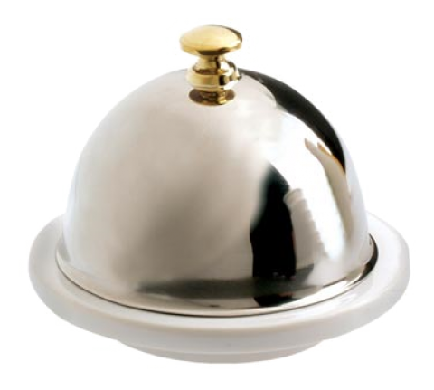 (J98+CI) Butter Dish, 2-1/2 oz., 3-1/2" dia. x 2-3/4"H, with stainless steel lid, glazed, porcelain, white, Les Essentiels (US stocked item)