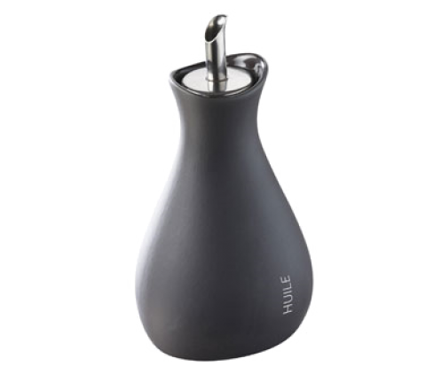 (LIE0725H) Oil Cruet, 8-3/4 oz., 3-1/4" x 3" x 6-1/2"H, "Huile" imprint porcelain, slate glaze interior with black matte outside, Likid (US stocked item)