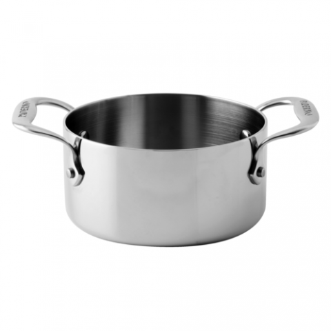 Mini Ramekin, 1/2 qt., 4-3/4" dia. x 2-3/8"H, 5-ply, aluminum & stainless steel construction, 2.7 mm thickness, induction ready, stainless steel riveted handle, dishwasher safe, Paderno, Series 12200 (Minimum Order Quantity: 2)