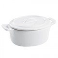 Mini Casserole Dish, 2.5 oz., 4-1/8"L x 2-3/4"D, 1-3/4"H, oval, with handles, includes lid, dishwasher & microwave safe, up to 800°F temperature range, porcelain, white, Paderno, Mini Porcelain (Special Order Item)