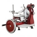 Meat Slicer, fully hand operated, 9-7/8" dia. 26-3/4"W x 20-1/2"L x 20"H, stainless steel blade, protection ring, built in blade sharpener, 8 cutting positions, 0-2.3mm cut thickness, aluminum, red finish, CE, Paderno, Tools & Utensils (Special Order Item)
