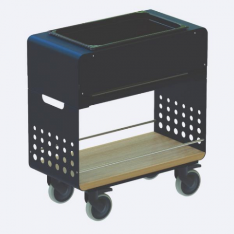 Wine Mini Trolley, 27-1/2"L x 14-5/8"W x 30-3/4"H, stainless steel/wood, black oak, Sambonet, Radici, Made in Italy