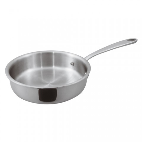 Mini Sauté Pan, 22 oz., 5-1/2" dia. x 1-5/8"H, without lid, induction ready, riveted handle, dishwasher safe, tri-ply stainless steel & aluminum, mirror polished finish, Paderno, Mini S/S Cookware