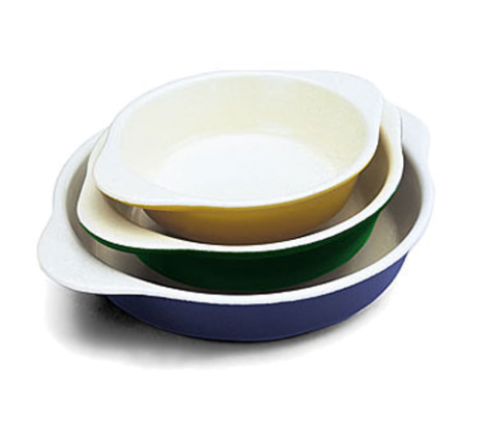 Baking Dish, 1-1/4 qt., 8-1/4" dia., round, ovenproof, dishwasher safe, induction ready, twice enameled cast iron construction, red, Paderno, Chasseur (Special Order Item)