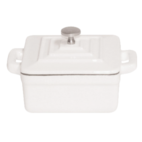 Mini Dutch Oven, 8-1/2 oz., 3-3/4" x 1-3/4" deep, square, twice enameled cast iron construction, matching lid with heat resistant knob, white, Paderno, Mini Dutch Ovens (Special Order Item)