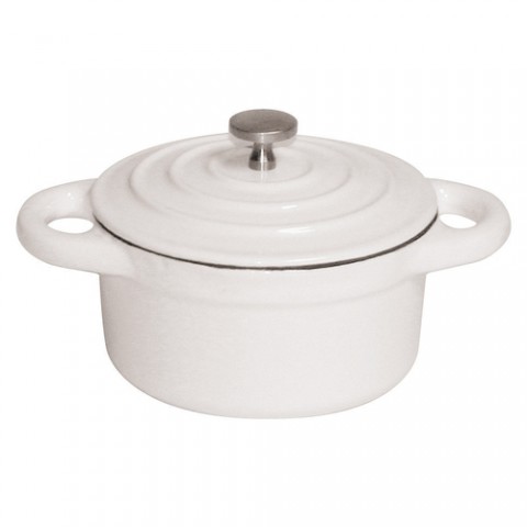 Mini Dutch Oven, 8-1/2 oz., 4" x 2" deep, round, twice enameled cast iron construction, matching lid with heat resistant knob, white, Paderno, Mini Dutch Ovens