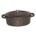 Mini Dutch Oven, 13-1/2 oz., 5-1/4" x 4" x 2" deep, oval, once enameled cast iron construction, matching lid with heat resistant knob, black, Paderno, Mini Dutch Ovens