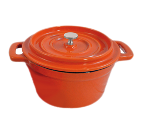Mini Dutch Oven 29 oz., 5-1/4" x 2-3/4" deep, round, once enameled cast iron construction, matching lid with heat resistant knob, orange, Paderno, Cookware
