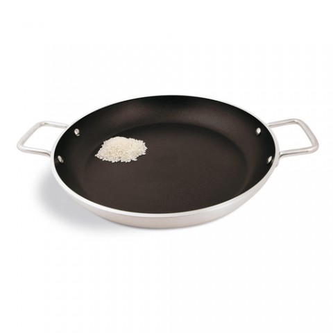 Paella Pan, 14-1/8" dia., 1/4" thick aluminum surface, multiple non-stick coatings, dual handles, Paderno, Cookware