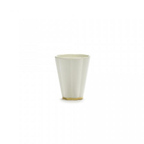 Mug, 7 oz., 3 1/8" dia. x 3 7/8"H, small, dishwasher safe, porcelain, white - gold, Serax, Roger Van Damme