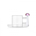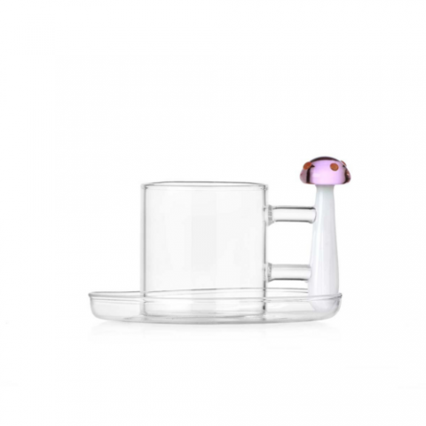 Coffee Cup & Saucer, 3.4 oz., 2.17/4.33" dia. x 2.8"H, dishwasher safe at low temperatures, borosilicate, pink mushroom with red dots, Ichendorf, Alice