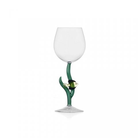 Glass, 11.8 oz., 3.4" dia. x 8.1"H, amber fish stem, hand wash recommended, borosilicate, Ichendorf, Marine Garden