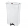 Slim Jim® Utility Container, 18 gallon (68 liter), 19-43/64"W x 12-15/64"D x 31-39/64"H, slim profile, internal hinged lid, includes: liner retainer band, front step-on pedal, small footprint, indoor, resin, white, FM approved, meets OSHA & OBRA standards (dual rigid stream liner sold separately), Made in USA (16 week lead time)