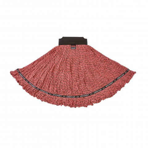 Maximizer Microfiber Wet Mop Head, medium, constructed of monofilaments microfibers and Maximizer blend, with stands up to 100 commercial washes, red, Made in USA