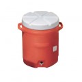 Cold Beverage Container, 10 gallon, 16-1/8"L x 16"W x 20-1/2"H, recessed spigot and carry handles, polyethylene, orange, Made in USA