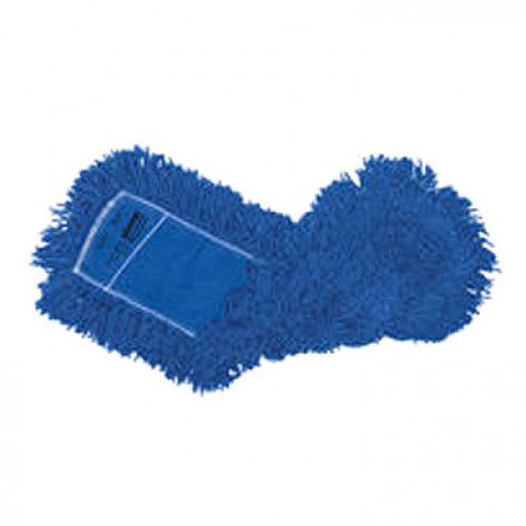 Dust Mop, 36"L x 5"W, synthetic, twisted loop, slip on/slip through backing, blue, Made in USA