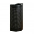Silhouette Indoor Receptacle, 9"L x 18"W x 32"H, 12 gallon, half round, open top, retainer band with leak proof plastic rigid liner, textured black, steel (1 week lead time), Made in USA