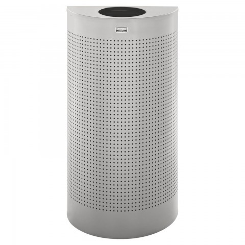 Silhouette Indoor Receptacle, 9"L x 18"W x 32"H, 12 gallon, half round, open top, retainer band with leak proof plastic rigid liner, stainless steel (1 week lead time), Made in USA