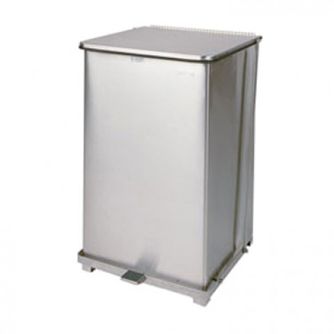 The Defenders® Step Can, with wheels, 19" sq x 30" H, 25 gallon, retainer band with plastic liner, stainless steel, UL, FM approved, OSHA (6 weeks lead time), Made in USA