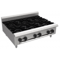 Serv-Ware - Gas Cooking - 36" Six (6) Burner Hot Plate - Natural Gas - Dimensions: 36" W x 27.2" D x 11.28" H - BTU/H: 25,000 per Burner - # of Burners: 6 - Gas Line: 3/4 - W.C. for Natural Gas: 4 in. - W.C. for LP: 10 in. - Materials: Stainless steel construction with heavy-duty cast iron grates - Warranty: 1 Year