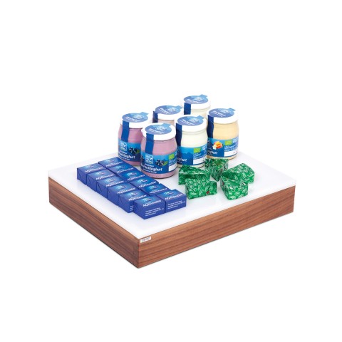 Ze Pe Buffet Serving Tray, 10.4"D x 12.8"W x 5"H, display 11", small, white tray, rectangular, walnut wood, (contact factory for price)