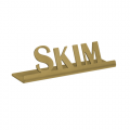 Table Sign, "Skim", 1"H x 3-1/2"W, laser-cut, dishwasher safe (hand washing is recommended), stainless steel, vintage gold, Made in USA
