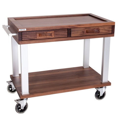 Ze Pe Trolley base, 21"W, 39"D,31.5"H, two level, rectangular, Nat Base, walnut (contact factory for price)