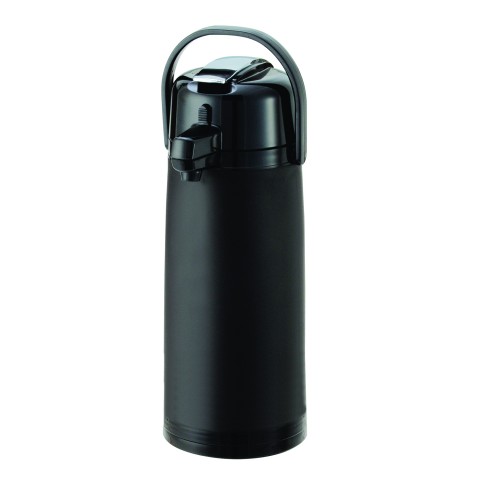 Eco-Air® Airpot, 2.4 liter (81.1 oz.), 6" x 8" x 16", retention: 4-6 hours, smooth body, stainless steel liner, lever style, black lid, vacuum insulated, hand wash (do not submerge), plastic, black, matte finish, NSF (Priced per each, packed 6 each per case)