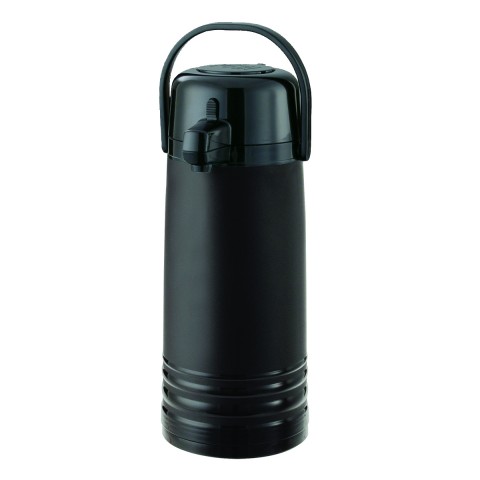 Eco-Air® Airpot, 2.4 liter (81.1 oz.), 6" x 8" x 16", retention: 4-6 hours, ribbed body, stainless steel liner, pump style, black lid, vacuum insulated, hand wash (do not submerge), plastic, black, matte finish, NSF (Priced per each, packed 6 each per case)