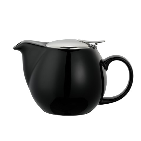 Teapot, 0.47 liter (16 oz.), 4-1/2" x 7" x 4-1/4", oval, with lid and infuser basket, dishwasher safe, ceramic, black (Priced per each, packed 6 each per case)