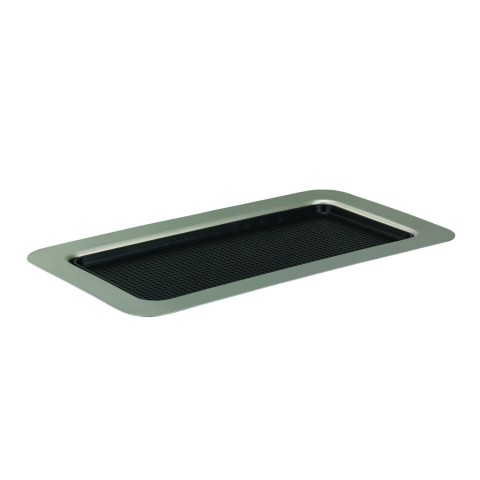 Tray, 13-1/2" x 7-1/2", rectangle, stackable, removable silicone rubber insert, non-slip, dishwasher safe, 18/8 stainless steel, brushed finish (Priced per each, packed 12 each per case)