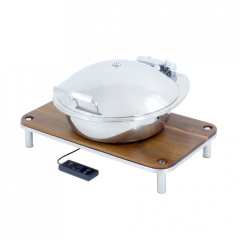 Domino Smart W Chafer Induction Set, large, includes: (1) SMART large round stainless steel chafing dish (1A15300) (1) domino large tray stand (1A19406090) (1) rectangle induction wood platform with magnets (1A19406TDR) (1) induction warmer (1AIW110AC) 18/10 stainless steel, polished finish