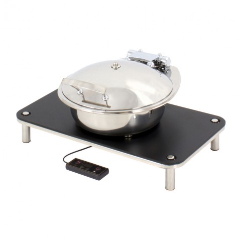 Domino Smart W Chafer Induction Set, medium, includes: (1) SMART medium round stainless steel chafing dish (1A15302) (1) domino large tray stand (1A19406090) (1) rectangle induction black phenolic platform with magnets (1ARECP) (1) induction warmer (1AIW110AC) 18/10 stainless steel, polished finish