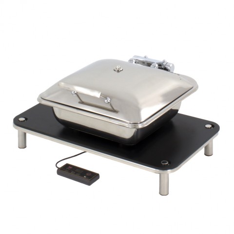 Domino Smart W Chafer Induction Set, square, includes: (1) SMART square stainless steel chafing dish (1A15600) (1) domino large tray stand (1A19406090) (1) rectangle induction black phenolic platform with magnets (1ARECP) (1) induction warmer (1AIW110AC) 18/10 stainless steel, polished finish