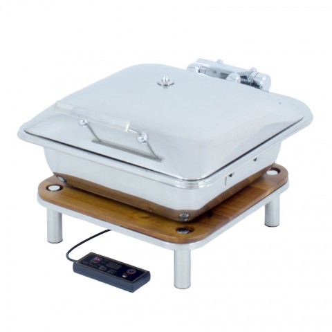 Domino Smart W Chafer Induction Set, square, includes: (1) SMART square stainless steel chafing dish (1A15600) (1) domino medium tray stand (1A19405090) (1) square induction wood platform with magnets (1A19405TDS) (1) induction warmer (1AIW110AC) 18/10 stainless steel, polished finish