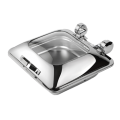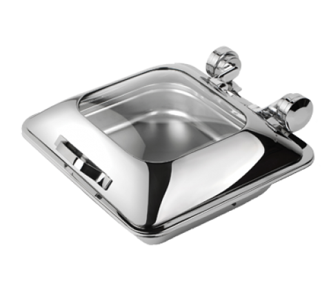 Smart W Buffet Chafing Dish, drop-in capable, 5-4/5 qt. (5-1/2 liter), 17-1/2"L x 15-3/4"D x 8"H, square, induction ready, glass self-closing hinged lid, insulated handle, clad bottom, includes: 2/3 oblong food pan, bolt & screw assembly, 18/10 stainless steel, polished finish (base not included)