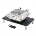 Domino Smart W Square Chafer Induction Set, 26" x 16" x 10" overall, includes: (1) SMART W square stainless steel chafing dish with glass lid (1A15700) (1) domino large tray stand (1A19406090) (1) rectangle induction black phenolic platform with magnets (1ARECP) (1) induction warmer (1AIW110AC) 18/10 stainless steel, polished finish (ships in multiple boxes)