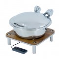 Domino Smart W Chafer Induction Set, medium, includes: (1) SMART W medium round stainless steel chafing dish (1A15705) (1) domino medium tray stand (1A19405090) (1) square induction wood platform with magnets (1A19405TDS) (1) induction warmer (1AIW110AC) 18/10 stainless steel, polished finish