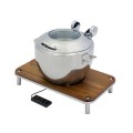 Domino Smart W Soup Induction Set, includes: (1) SMART W stainless steel soup urn (1A16800) (1) domino large tray stand (1A19406090) (1) rectangle induction wood platform with magnets (1A19406TDR) (1) induction warmer (1AIW110AC) 18/10 stainless steel, polished finish (ships in multiple boxes)