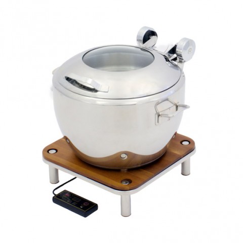 Domino Smart W Soup Induction Set, includes: (1) SMART W stainless steel soup urn (1A16800) (1) domino medium tray stand (1A19405090) (1) square induction wood platform with magnets (1A19405TDS) (1) induction warmer (1AIW110AC), 18/10 stainless steel, polished finish (ships in multiple boxes)
