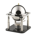 Domino Mini Sauce Chafing Dish, 1 qt. (1.05 liter), 10" dia. x 12-1/2"H, round, lid can open to 90° or lift up, rust & corrosion resistant, includes: mini porcelain food pan, fuel cup holder, removable versatile legs, 18/10 stainless steel, polished finish