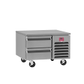 Freezer Base, remote, low height, 36", (2) 26" self-closing drawers, center pull handles, stainless steel exterior & 6" legs, 120v/60/1-ph, 8 amps, 1/3 HP, order with Platinum Series modular cook tops, UL, NSF