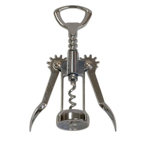 Winged Cork Screw, 6-5/8", twist-in, press down wings, with bottle opener built into handle, chrome-plated