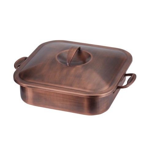 Servella Buffet Server, 4 qt., 11-7/16"L x 11-7/16"W x 2-15/16"H, square, includes: (1) removable 4 qt. insert, with handles & lift-off lid, interior water fill line, induction ready, stainless steel & copper plated with aged finish (Stock Item)